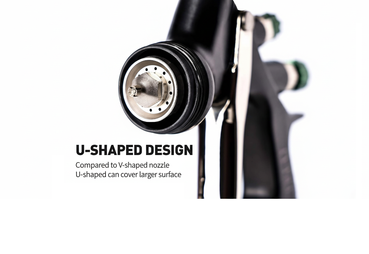 Patented U-nozzle atomization rivals the best — delivering a lightweight, efficient tool with a flawless finish.