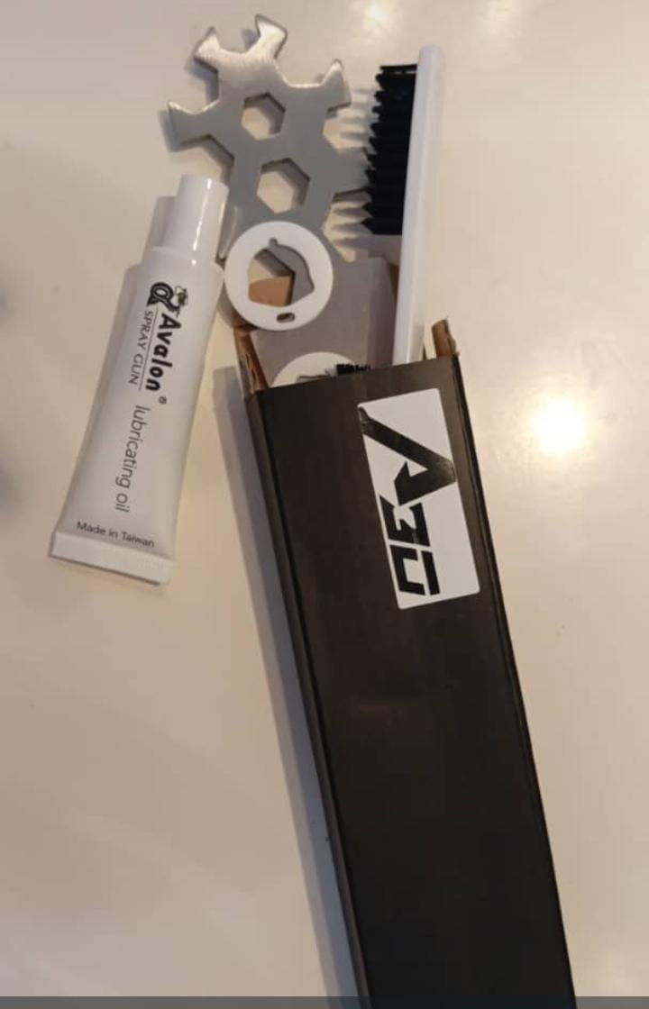 Kit contains: Service/maintenance parts & tools/brushes/oil/Cup/Adapter/ Air regulator
