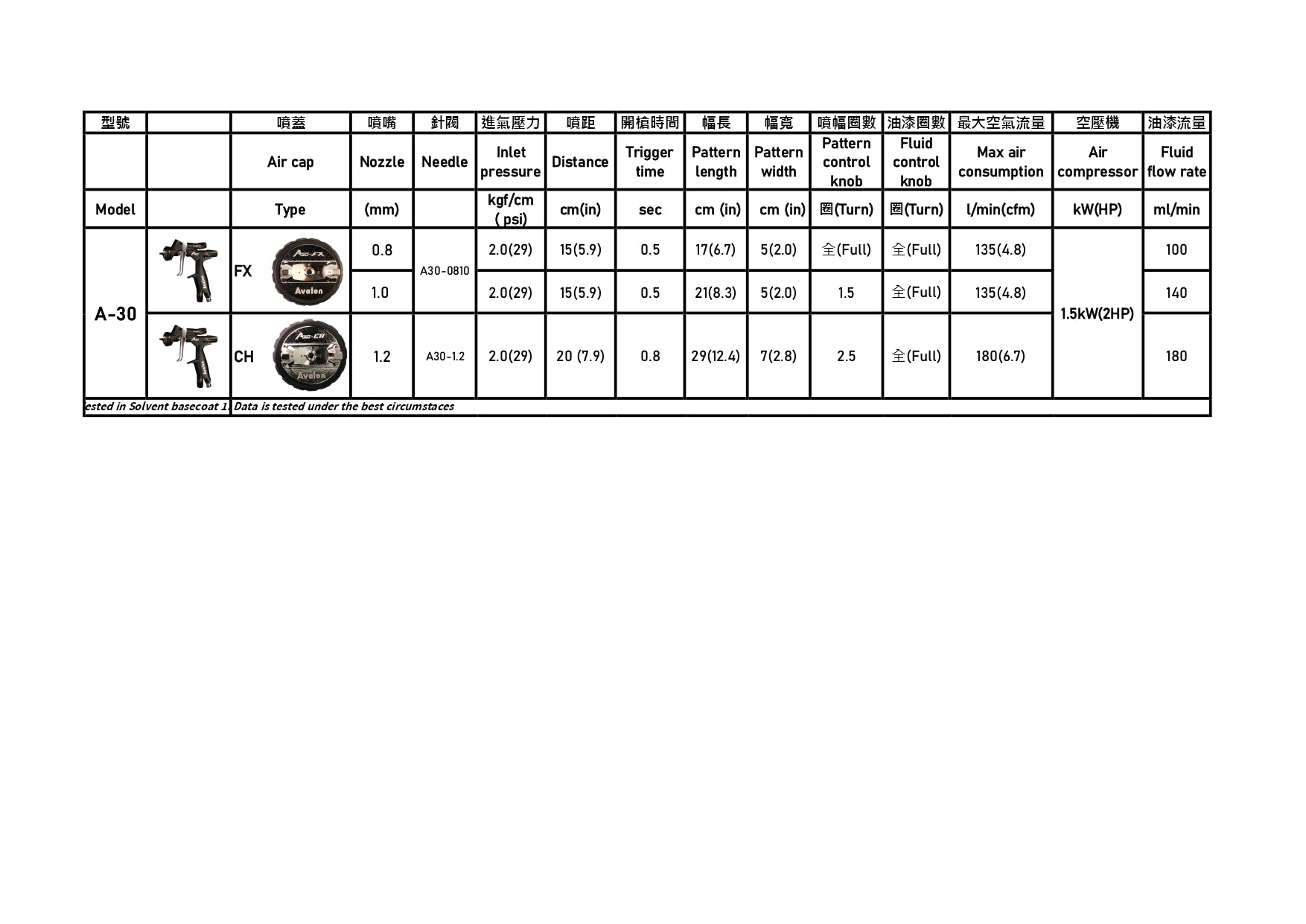 The A30 touch-up spray gun is incredibly convenient for painting small objects. The FX- 1.2 nozzle's long spray pattern is perfect for painting door panels or performing bumper touch-ups. The grip is extremely comfortable, so your hand won't feel fatigued even after extended use.